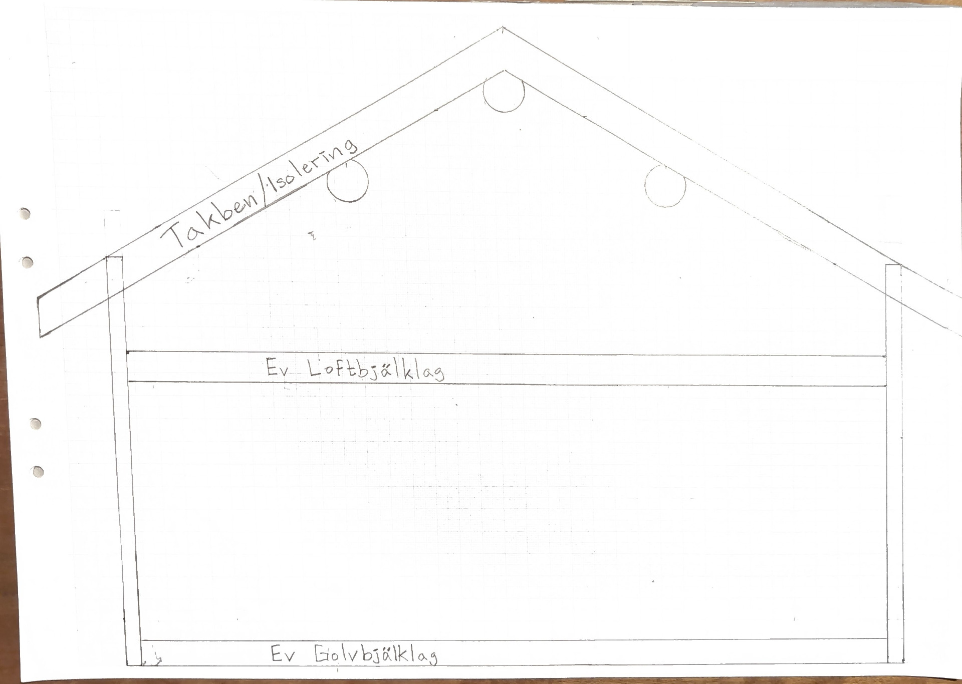 Illustration över hur takben/isolering och ev. golv/loftbjälklag ingår i väggbandshöjd.